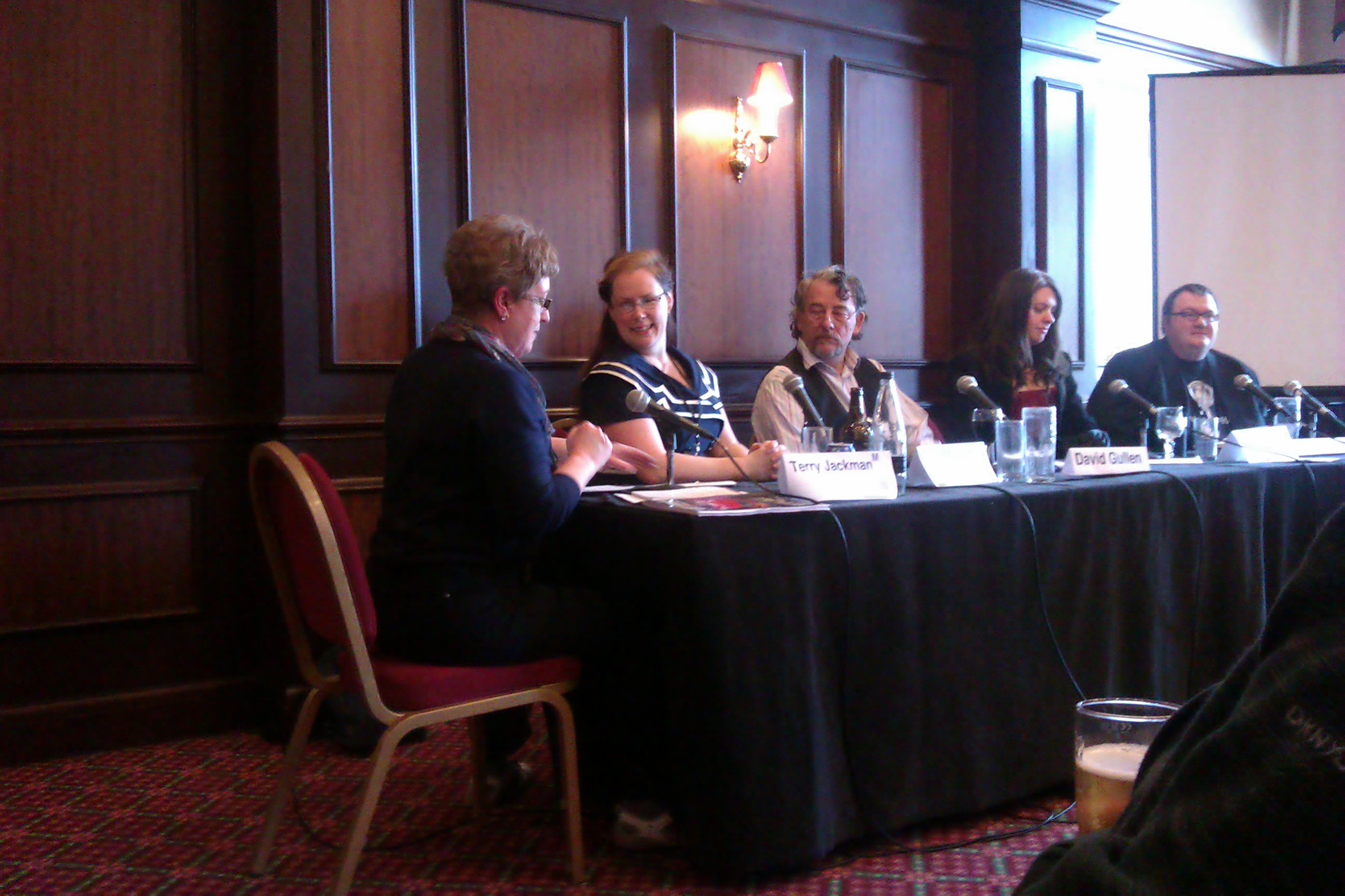 Earlier in the day on Friday, I also attended two talks where my friend and all round good egg, Adrian Faulker, was a panelist. The first was Games in Fiction, which was interesting, however, because there was another panel on a very similar subject on Saturday, it meant the area of discussion was very narrow so it sort of trundled along. The second panel was probably one of my favourites of the weekend, Debut Authors’ Panel, where Bella Pagan from Tor UK moderated a diverse group of new writers. The panelists included Adrian Faulkner, Emma Newman, Francis Knight, Naomi Foyle and Stephanie Saulter. It was a great panel and each author had a very different story to tell about how they went from aspiring writer to being an author in print. Bella Pagan was an excellent moderator, including everyone, keeping the conversation going and it was also a lot of fun.