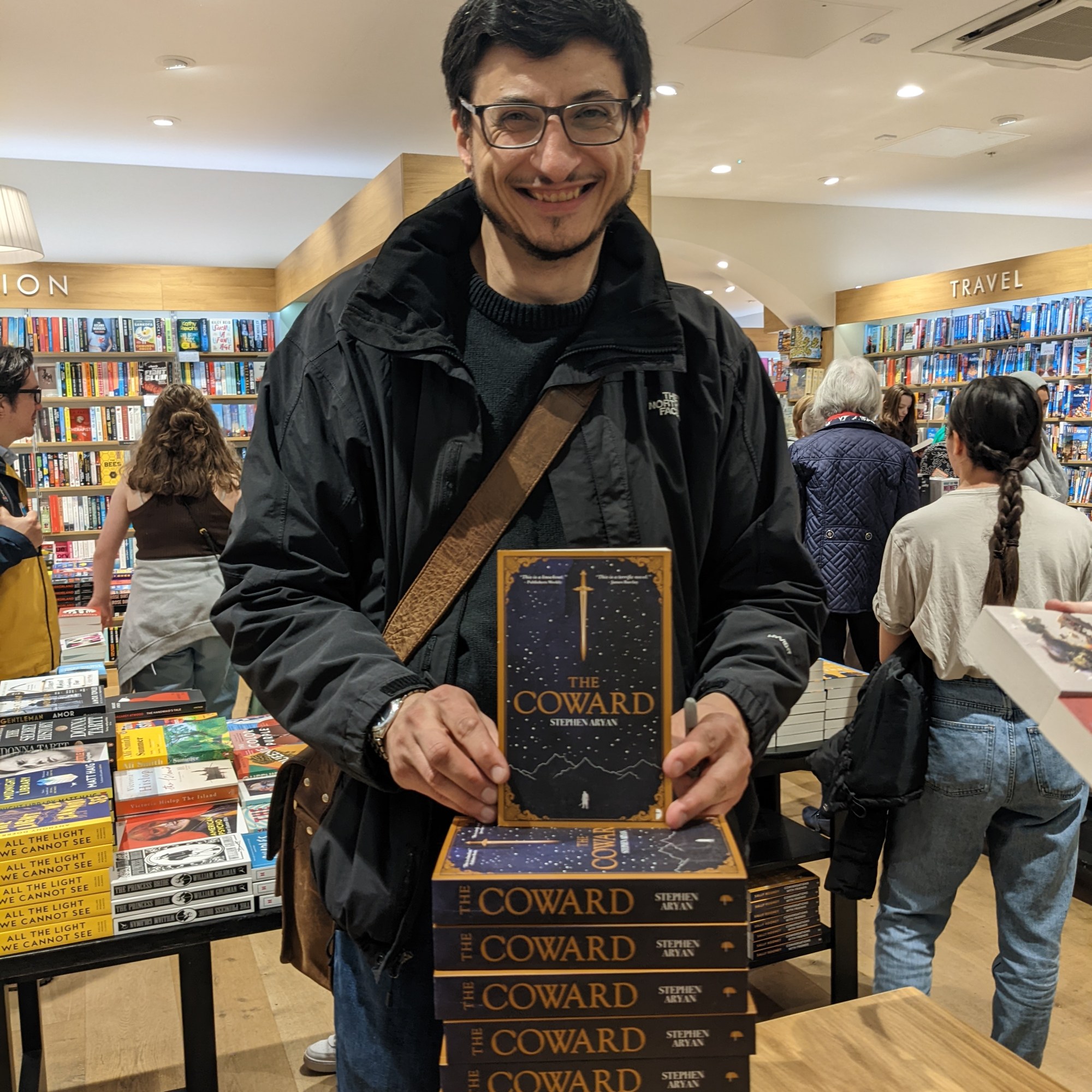 I had an excellent time the other week in Manchester. First, a number of Angry Robot authors and I, signed copies of our books at Waterstones in the Trafford Centre. Thank you to Brian, the bookseller there, for being so supportive of our SFF books. The signed copies are selling fast, so if you wanted a signed copy, you’d better get a move on!