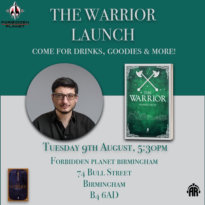 The launch of paperback edition of The Warrior is happening on Tuesday 9th August at 5.30pm in Birmingham at Forbidden Planet.